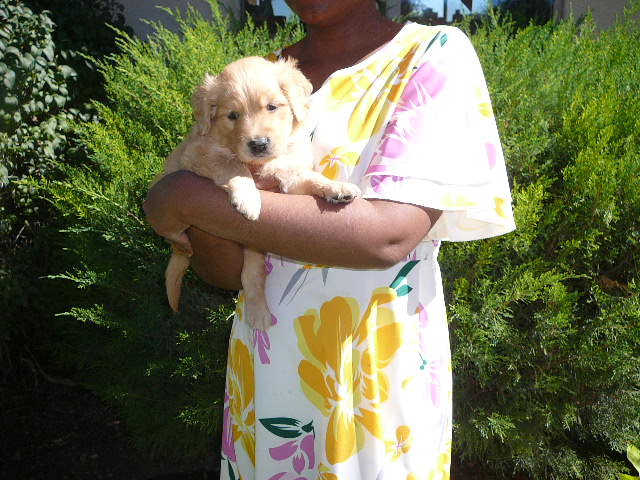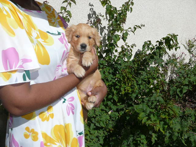 Donatella with Apache produced one very handsome little golden colored male. He was born Sept 19. Both parents are AKC registered and OFA hip and elbow certified. The price is $2300. We sell with the first vaccination, a microchip, and several dewormings. If you want this male pup give me a call and reserve him with a $200 deposit.