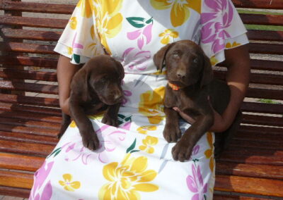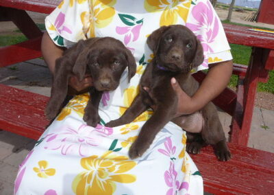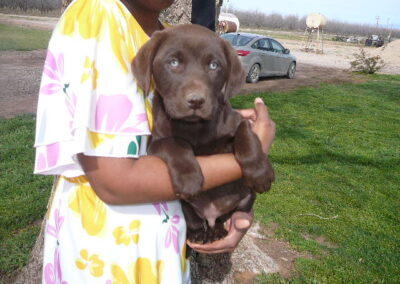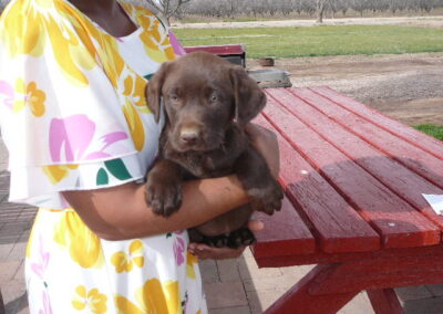 Our two old faithful chocolate labs; Brownie and Blue produced a nice litter of pups on Dec 11. They are both AKC registered and OFA hip and elbow certified. The price is $1800. We sell with the first vaccination, a microchip and several dewormings. Give us a call or email and we can get you on the list with a deposit. These pups will be ready to go home later in Jan.