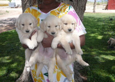 We are happy that you are visiting our website. We try and keep this home page current on the new litters of Goldens and Labs that we have. We list who the parents are and if we don’t have them pictured here you may browse through our Galleries to view them. There are puppy Galleries too that show you the quality of pups we have raised through our 30 years of breeding. We are a Christian family in southeast AZ who got our first Goldens when our oldest son was 2 years old. Now he is married and has little children of his own, and of course a Golden lived with them too! Use the “Contact Us” link to speak with us about reserving your puppy!