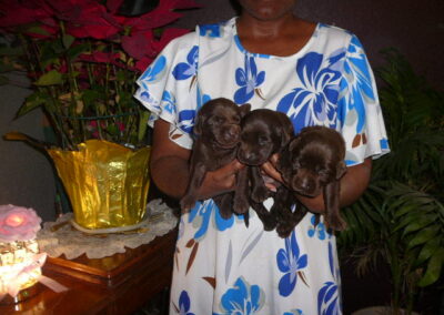 Our two old faithful chocolate labs; Brownie and Blue produced a nice litter of pups on Dec 11. They are both AKC registered and OFA hip and elbow certified. The price is $1800. We sell with the first vaccination, a microchip and several dewormings. Give us a call or email and we can get you on the list with a deposit. These pups will be ready to go home later in Jan.