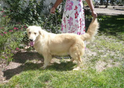 Donatella with Apache produced one very handsome little golden colored male. He was born Sept 19. Both parents are AKC registered and OFA hip and elbow certified. The price is $2300. We sell with the first vaccination, a microchip, and several dewormings. If you want this male pup give me a call and reserve him with a $200 deposit.
